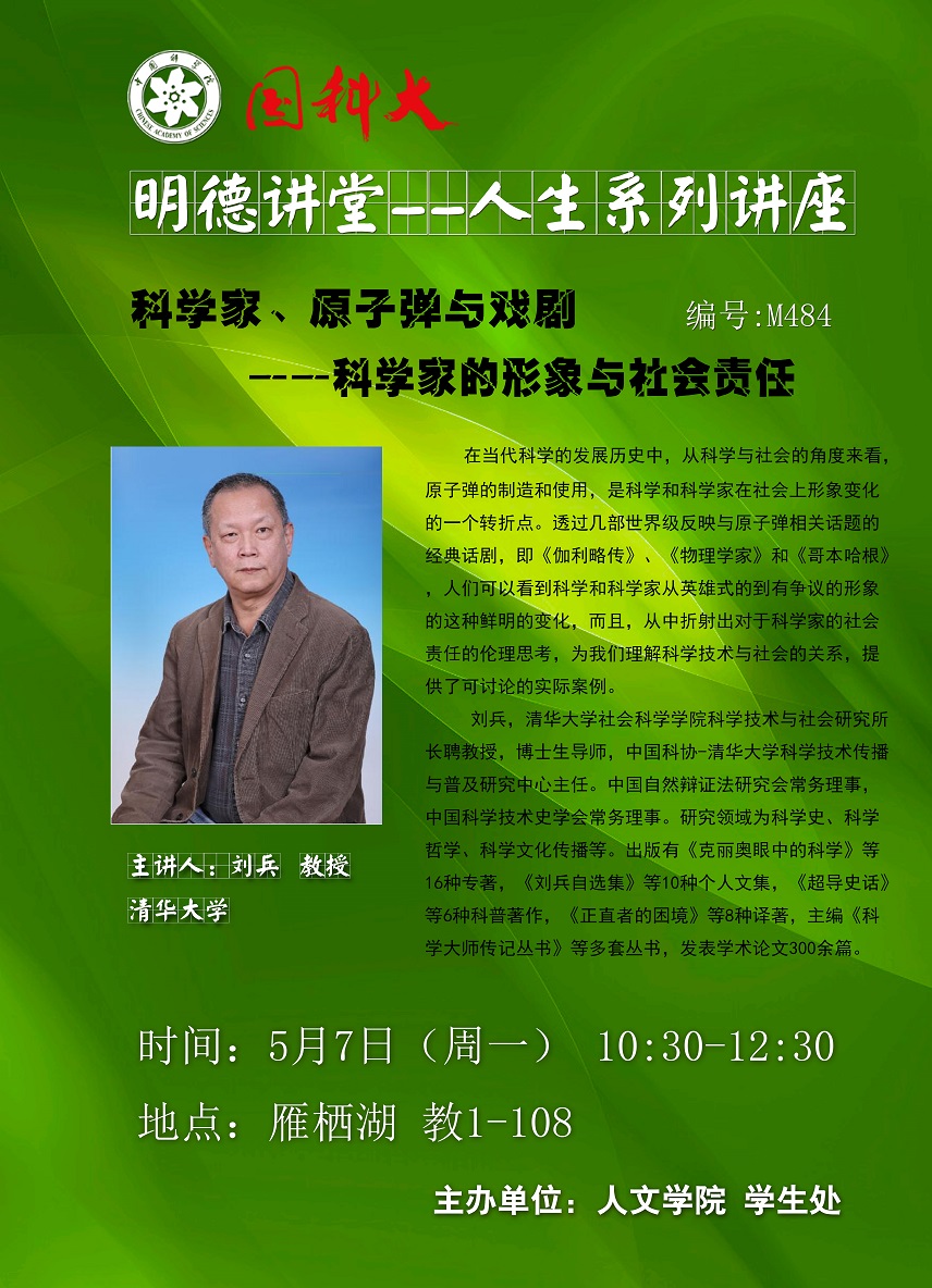 明德讲堂M484预告:科学家、原子弹与戏剧——科学家的形象与社会责任