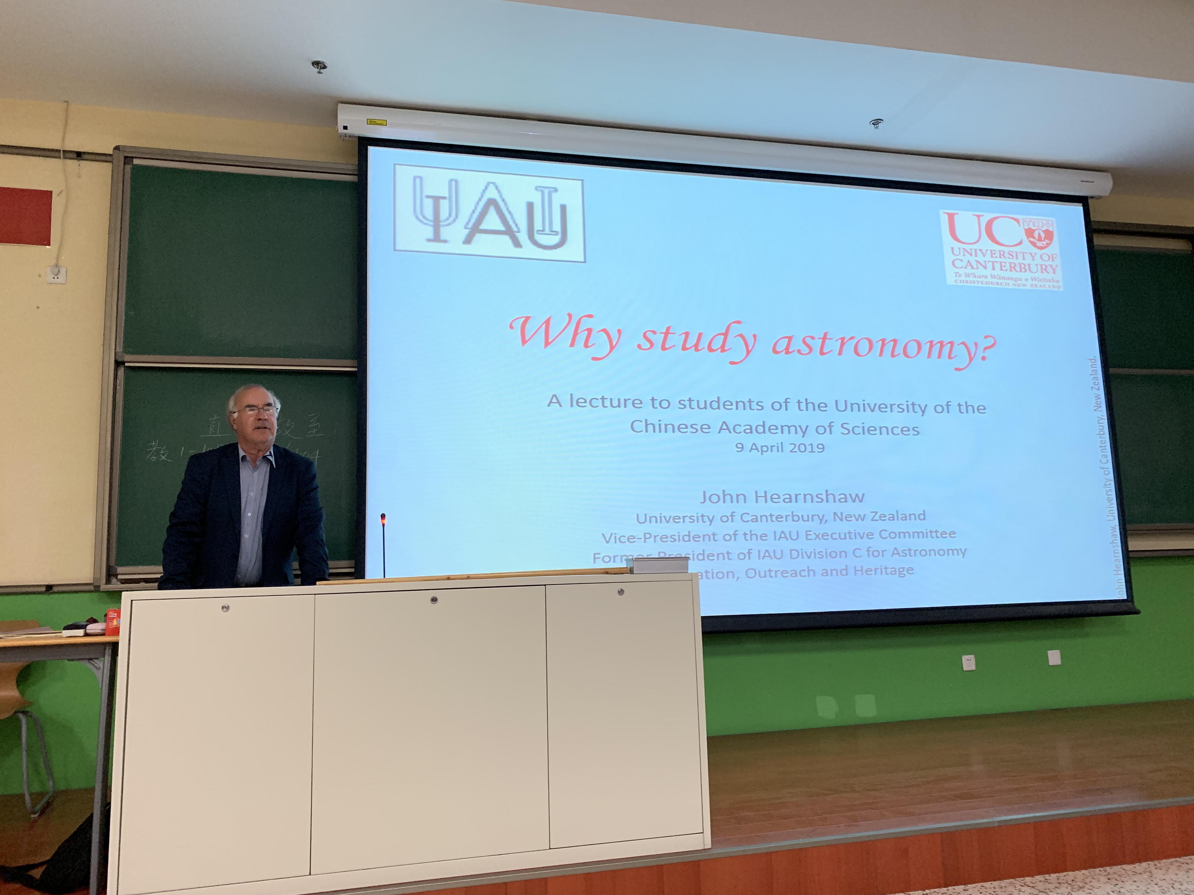 John Hearnshaw教授首先通过在天文学的过去开始说起,以前天文学的研究包括了,时间单位的定义(日、月、年)、日历的发展(热带,恒星年)、用于计时(日盘)、用于海上航行等等。同时他表示中国古代天文的研究有着非常丰富的过往,举了中国古代的张衡、一行、郭守敬等重要人物进行论证说明
