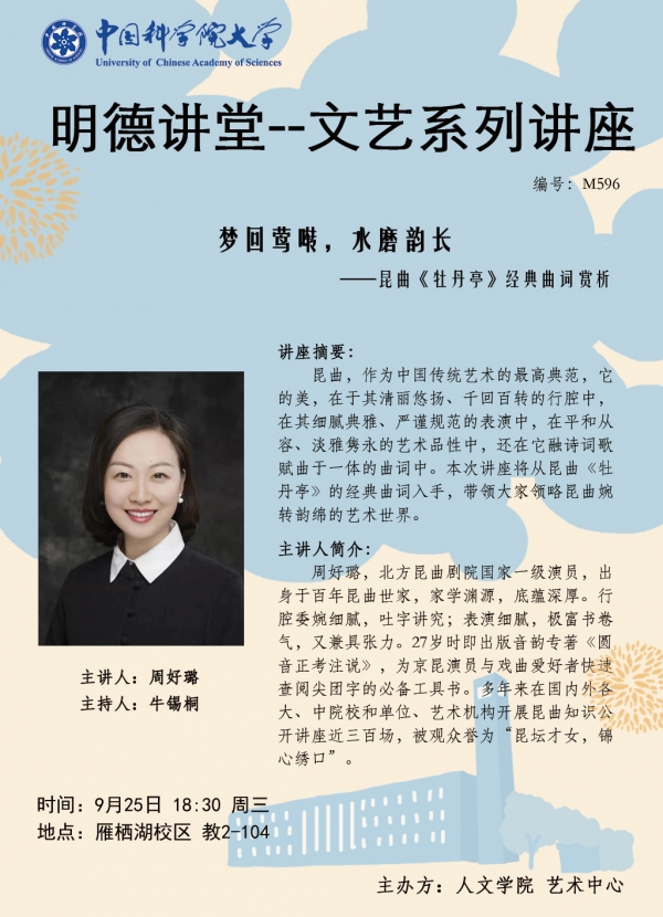 明德讲堂M596预告:梦回莺啭,水磨韵长 ——赏析昆曲《牡丹亭》经典曲词