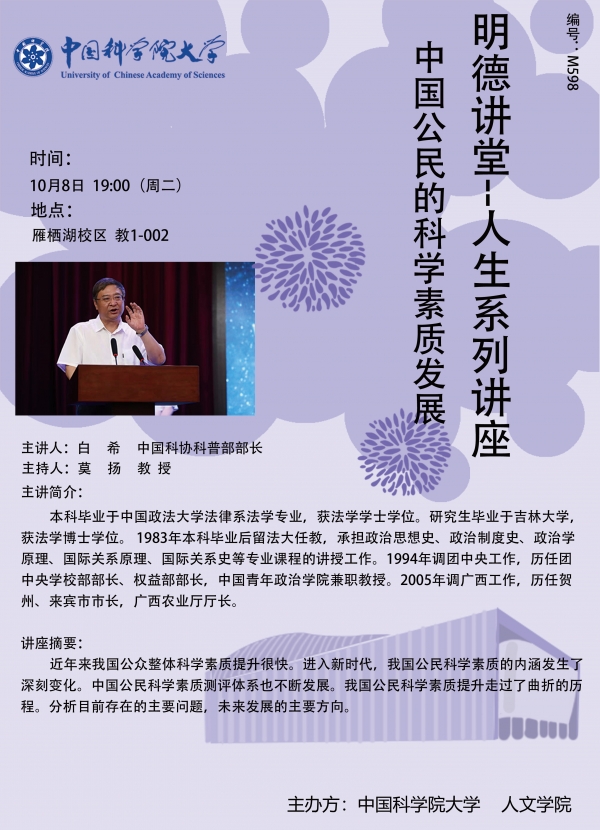 明德讲堂M598预告:中国公民科学素质发展现状及工作方略