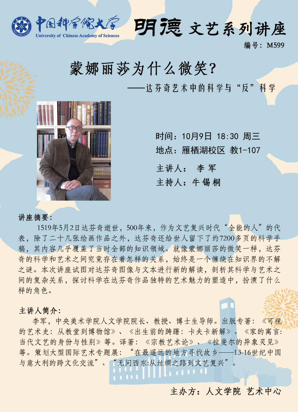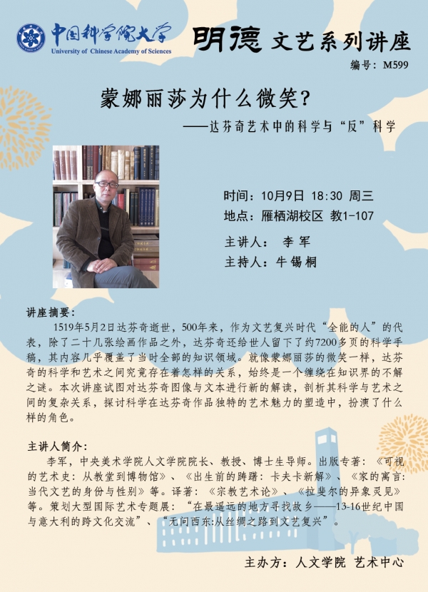 明德讲堂M599预告:蒙娜丽莎为什么微笑?——达芬奇艺术中的科学与“反”科学