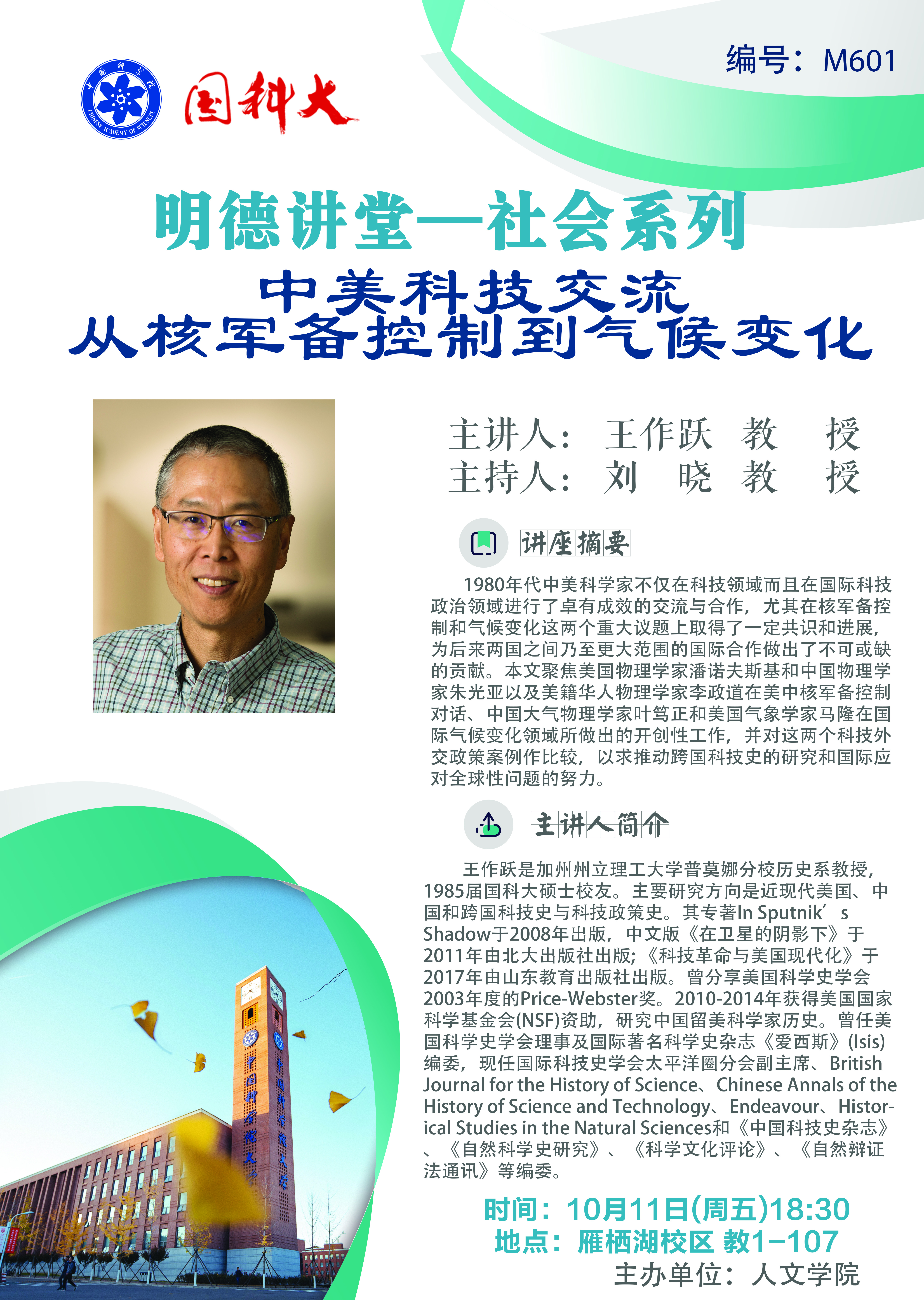 明德讲堂M601预告:中美科技交流:从核军备控制到气候变化