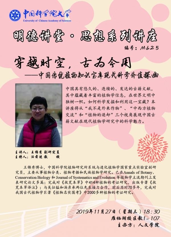明德讲堂M625预告:穿越时空,古为今用——中国传统植物知识宝库现代科学价值探幽