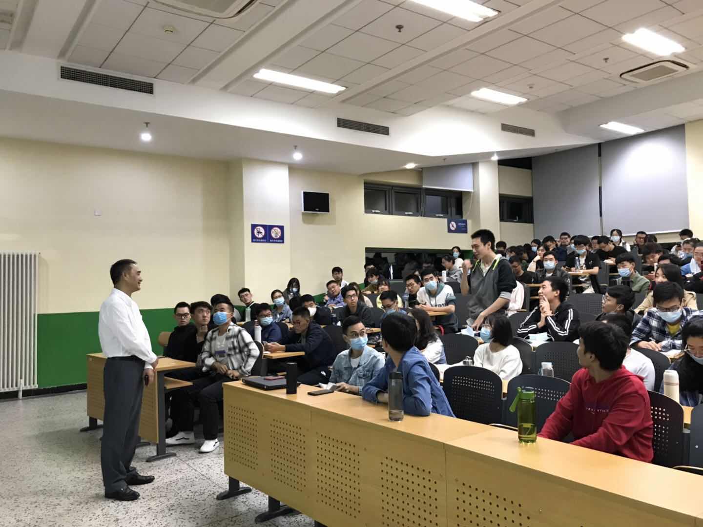 本次讲座过程中,同学们多次被于老师的幽默所感染,哄堂大笑。结束报告后,莫扬教授补充发表了自己的看法。同学们在提问环节也提出了自己的问题并获得了于老师详尽周密的解答。讲座在掌声中圆满结束。