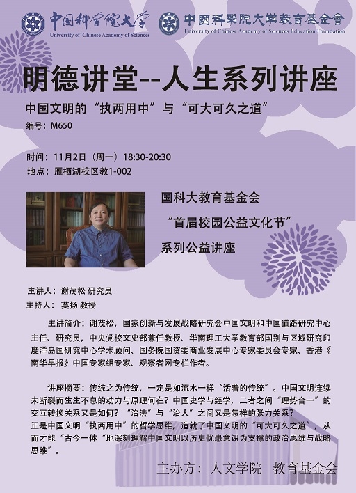 明德讲堂M650预告:中国文明的“执两用中”与“可大可久之道”
