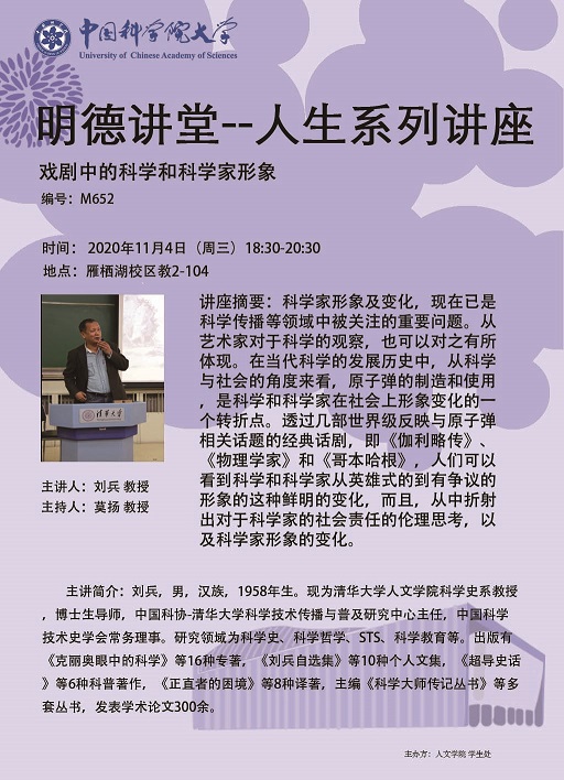 明德讲堂M652预告:戏剧中的科学和科学家形象