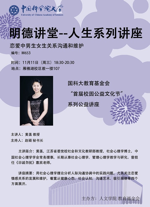 明德讲堂M653预告:恋爱中男生女生关系沟通和维护