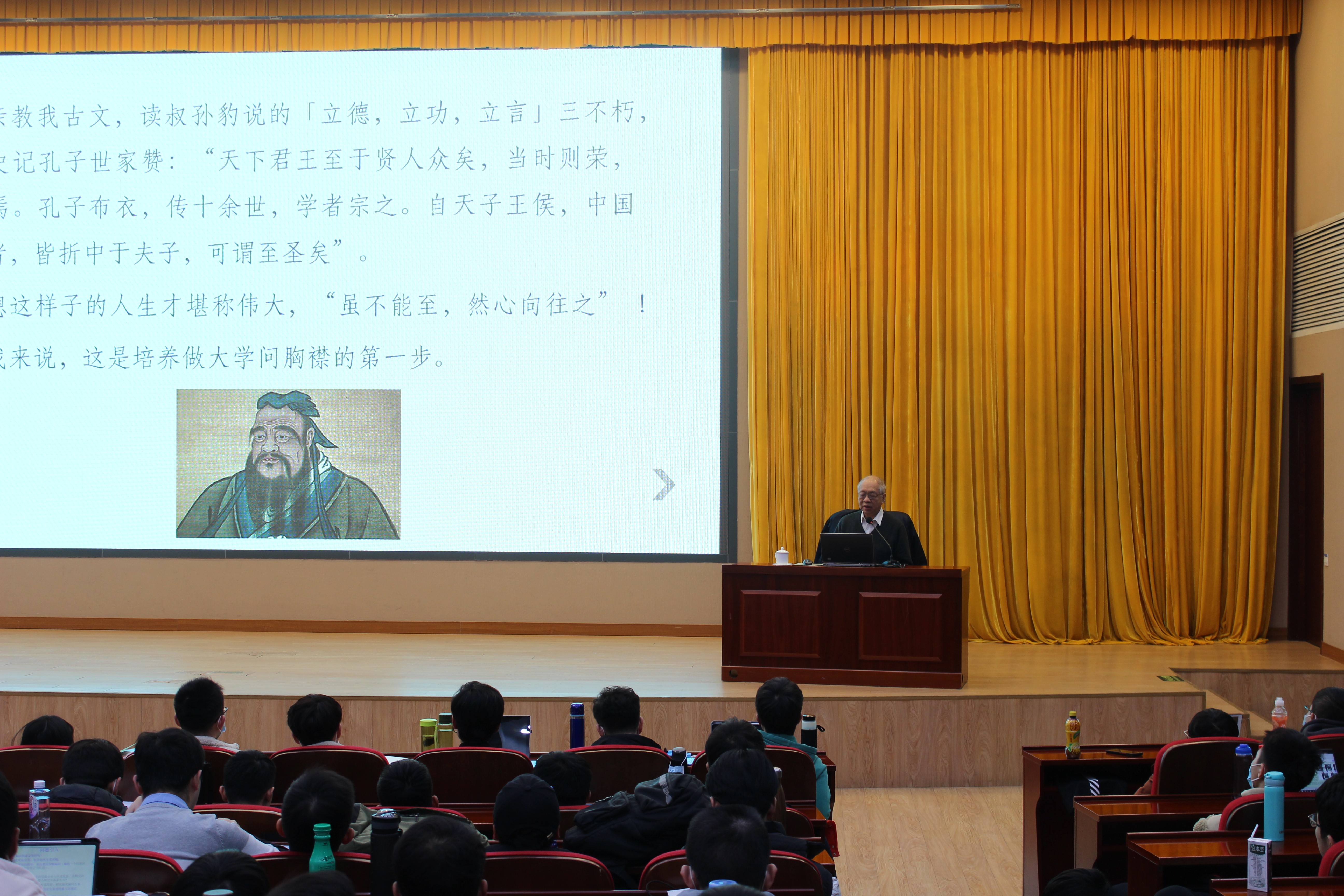 本次讲座,丘成桐院士与同学们分享了自己的学术经历,畅谈从事科学研究所需要的个人素养。
