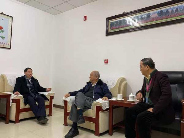 讲座前丘先生同吴董事长、汪前进教授会晤