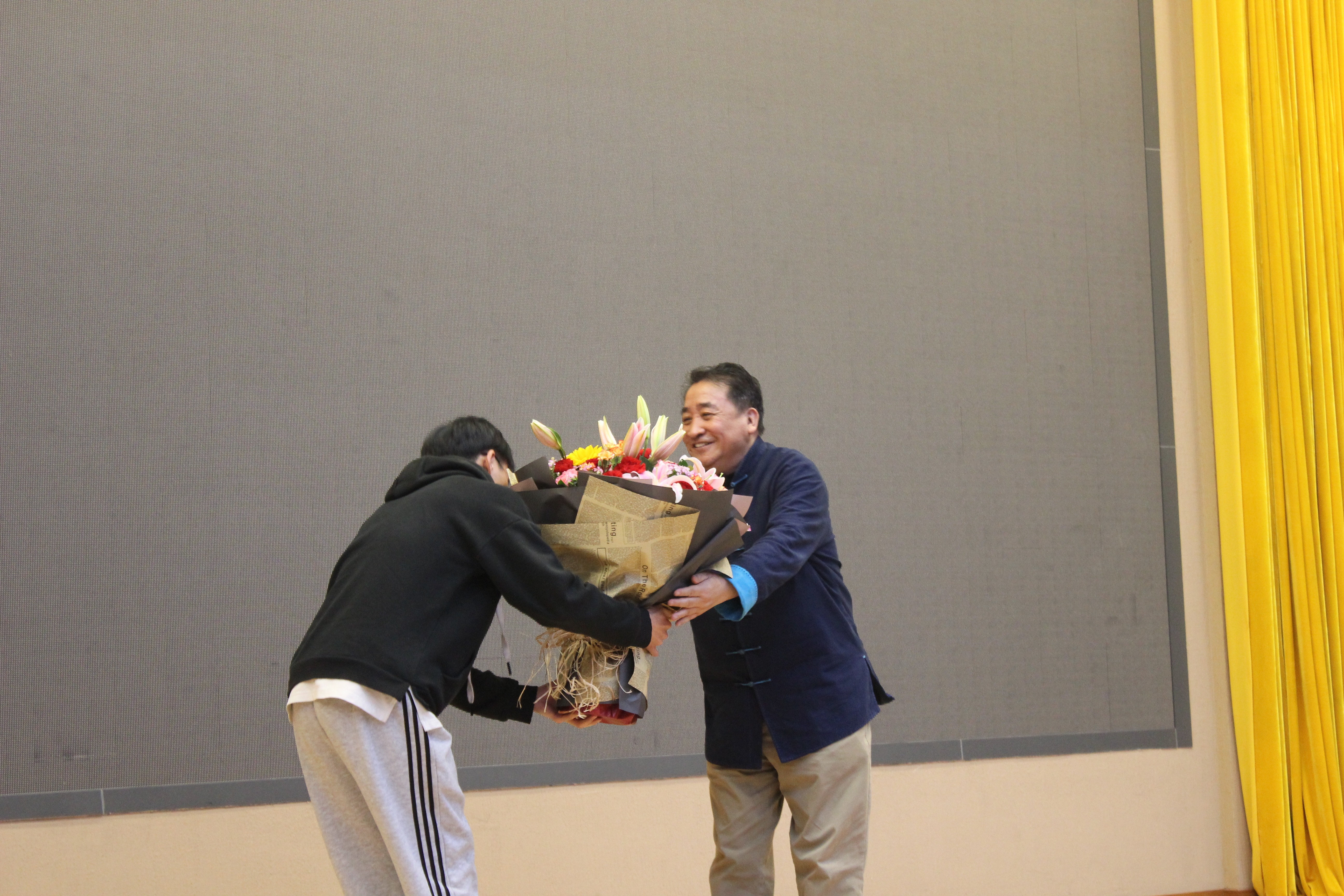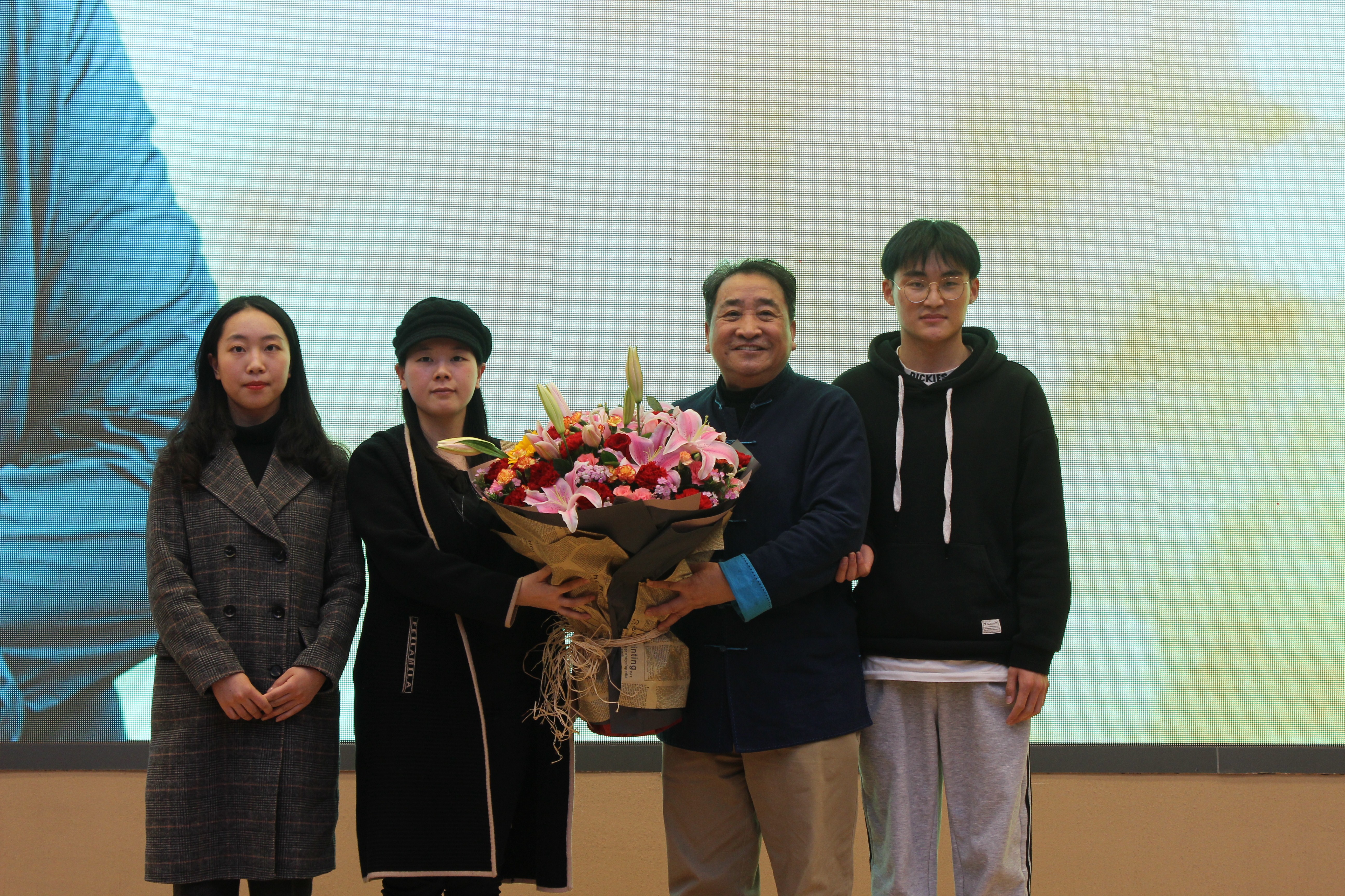 “另一方面,艺术家精神与科学家精神至少有一点也是相同的,就是必须具备高尚的人格。姜老师之所以能取得如此高的艺术成就,被誉为‘德艺双馨的艺术家’,其根本的原因就在于姜老师具有高尚的人格。所以,我们大家要向姜老师好好学习。”