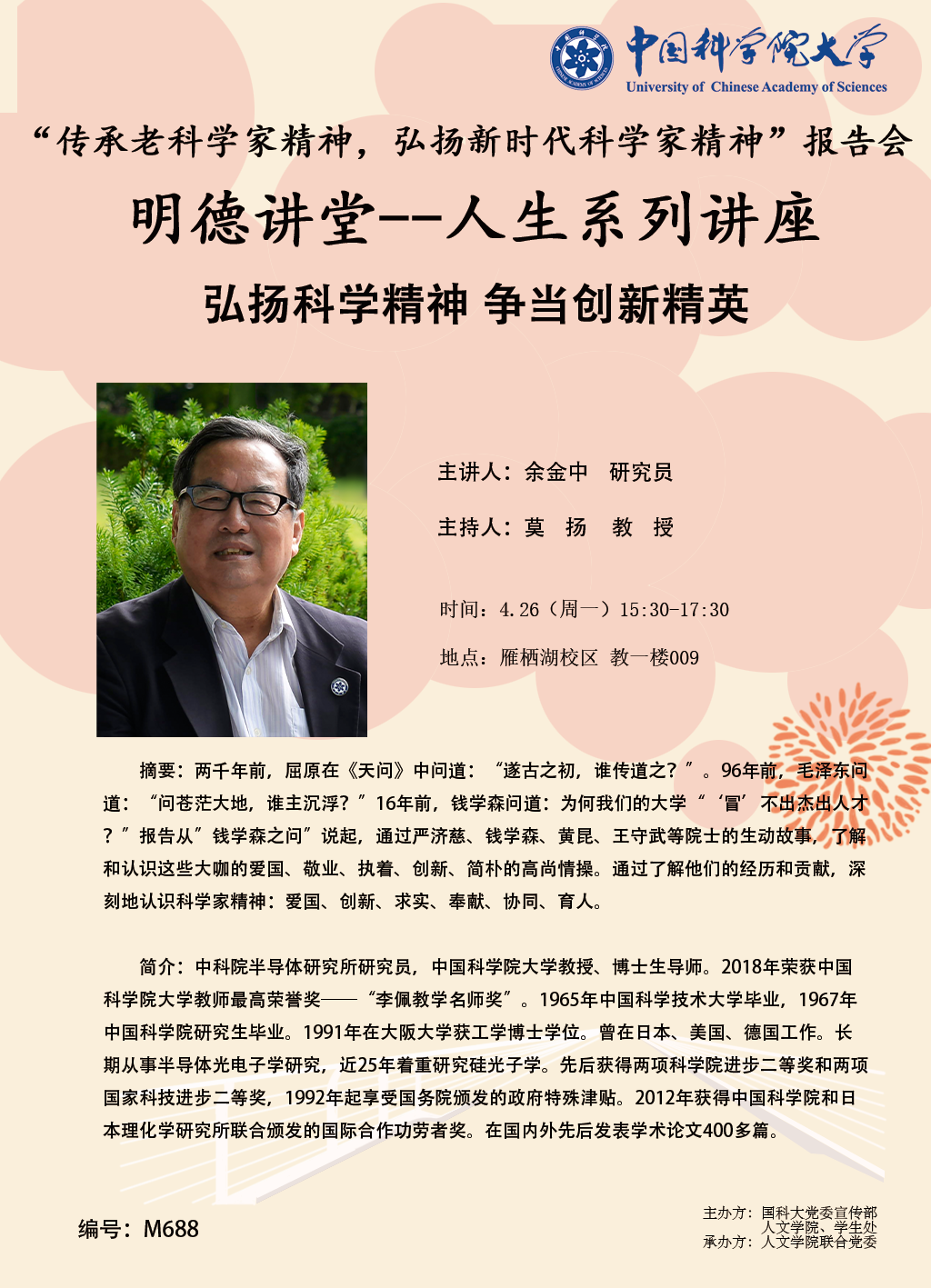 明德讲堂M688预告:弘扬科学精神 争当创新精英
