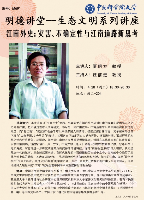 明德讲堂M691预告:江南外史:灾害、不确定性与江南道路新思考