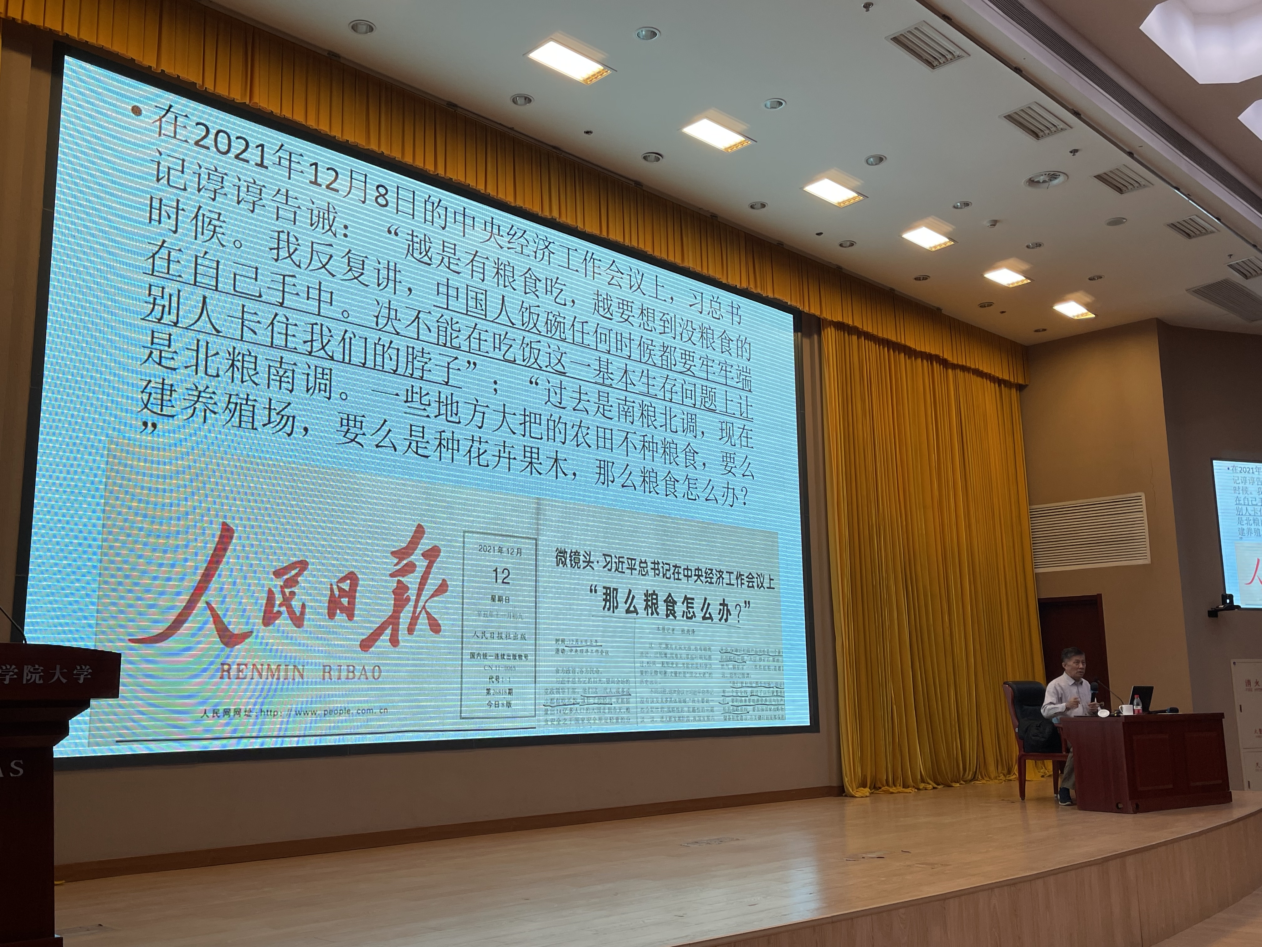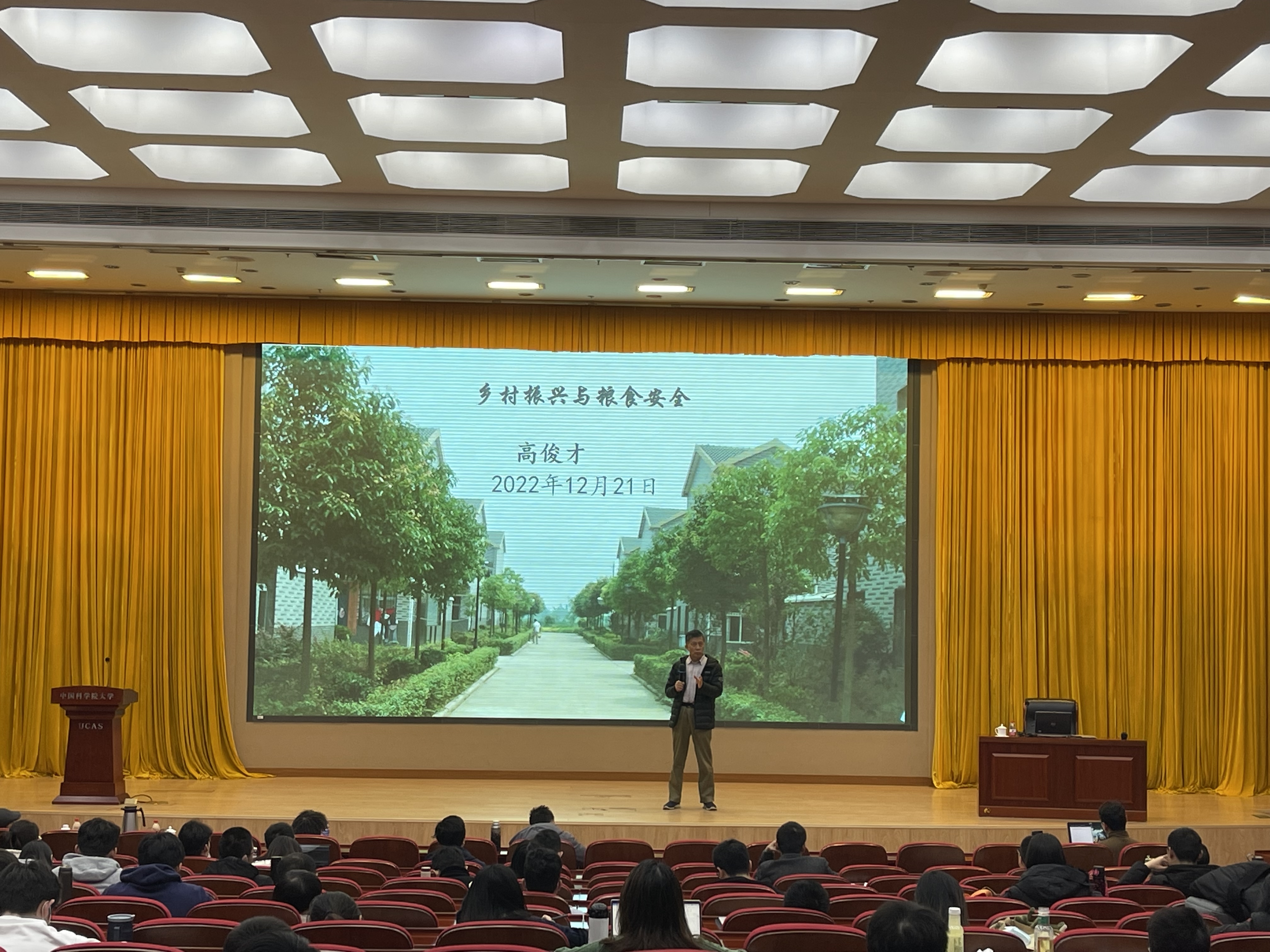 2021年12月21日晚,明德讲堂思想系列讲座M770——《乡村振兴与粮食安全》在永利官网雁栖湖校区国际会议中心报告厅举行。本次讲座特邀高国家发改委农经司原司长高俊才研究员为同学们介绍中国促进乡村振兴的“六个融合”、“十四五”重要项目和粮食安全问题。国科大永利3044noc汪前进教授主持了本次讲座。