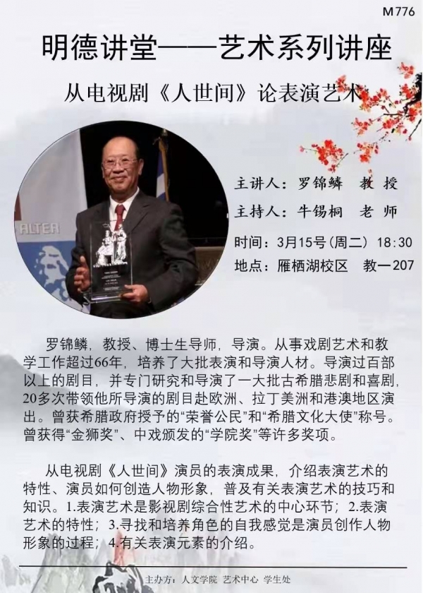 明德讲堂M776预告:从电视剧《人世间》论表演艺术