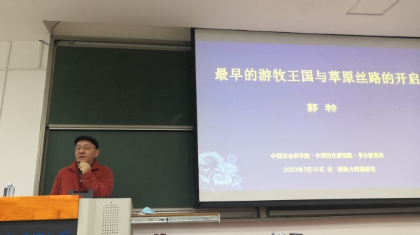 2022年3月16日晚18:30,中国社会科学院中国历史研究院、考古研究所研究员郭物老师应邀来到永利官网雁栖湖校区,为同学们带来了题为《最早的游牧王国与草原丝路的开启》的专题讲座。永利3044noc蒋洪恩教授主持本次讲座。