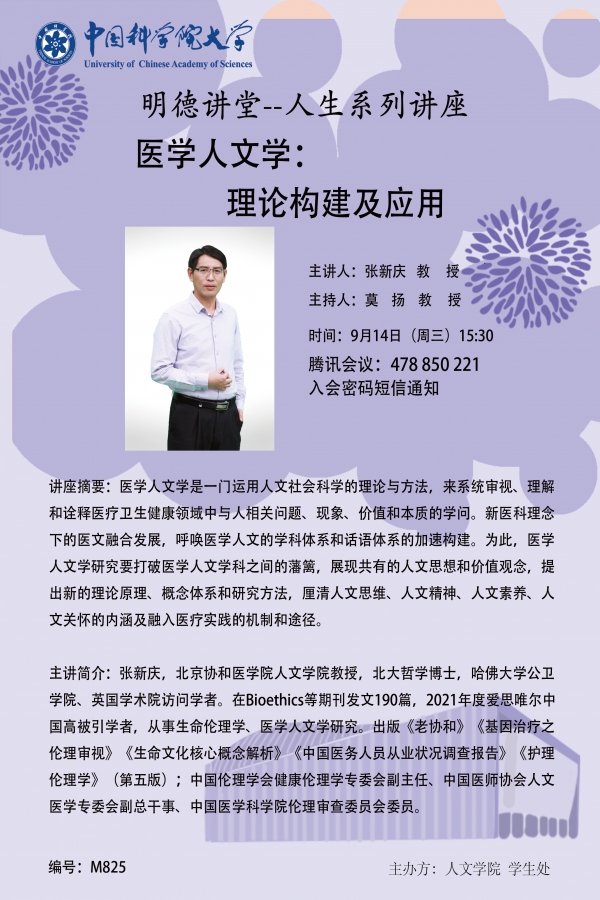 明德讲堂M825预告:医学人文学:理论构建及应用