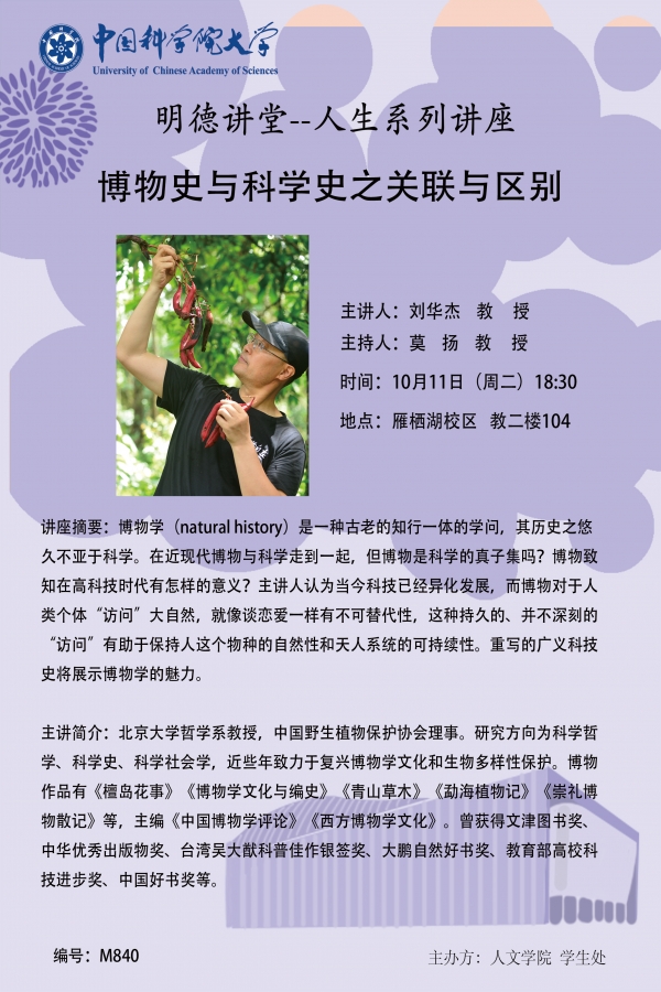 明德讲堂M840预告:博物史与科学史之关联与区别