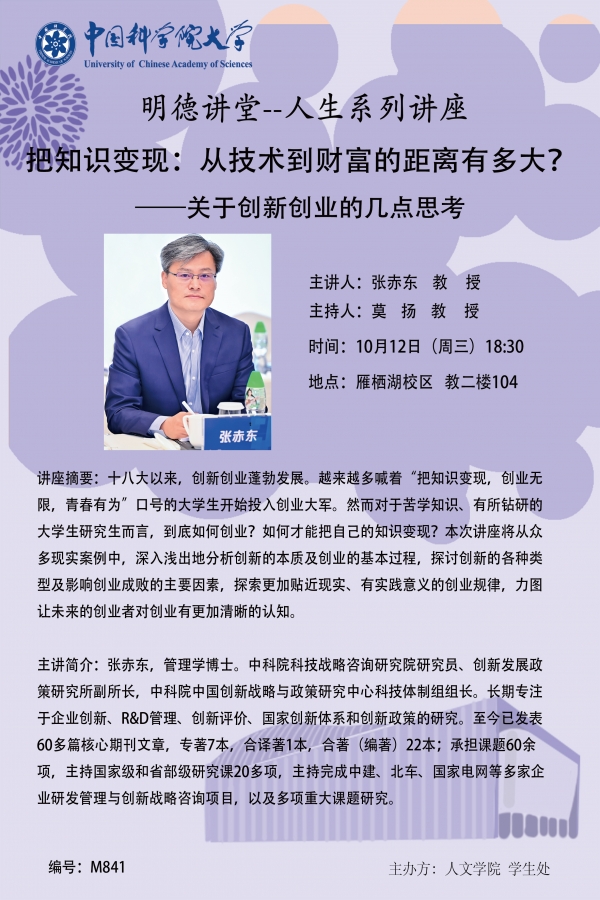 明德讲堂M841预告:把知识变现:从技术到财富的距离有多大——关于创新创业的几点思考