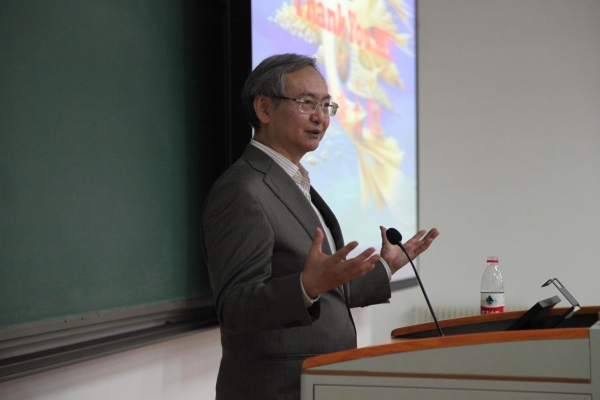 本次讲座是苏浩教授继去年后第二次来国科大开讲,正式开始前,为了调节气氛,苏浩教授首先向同学们发问,“我们是什么?”、“我们除了中国人还是什么?”,现场的同学们瞬间被这个话题吸引,纷纷提出了自己的观点和答案。苏浩教授不置可否,随之微微一笑,开始了今天的讲座。