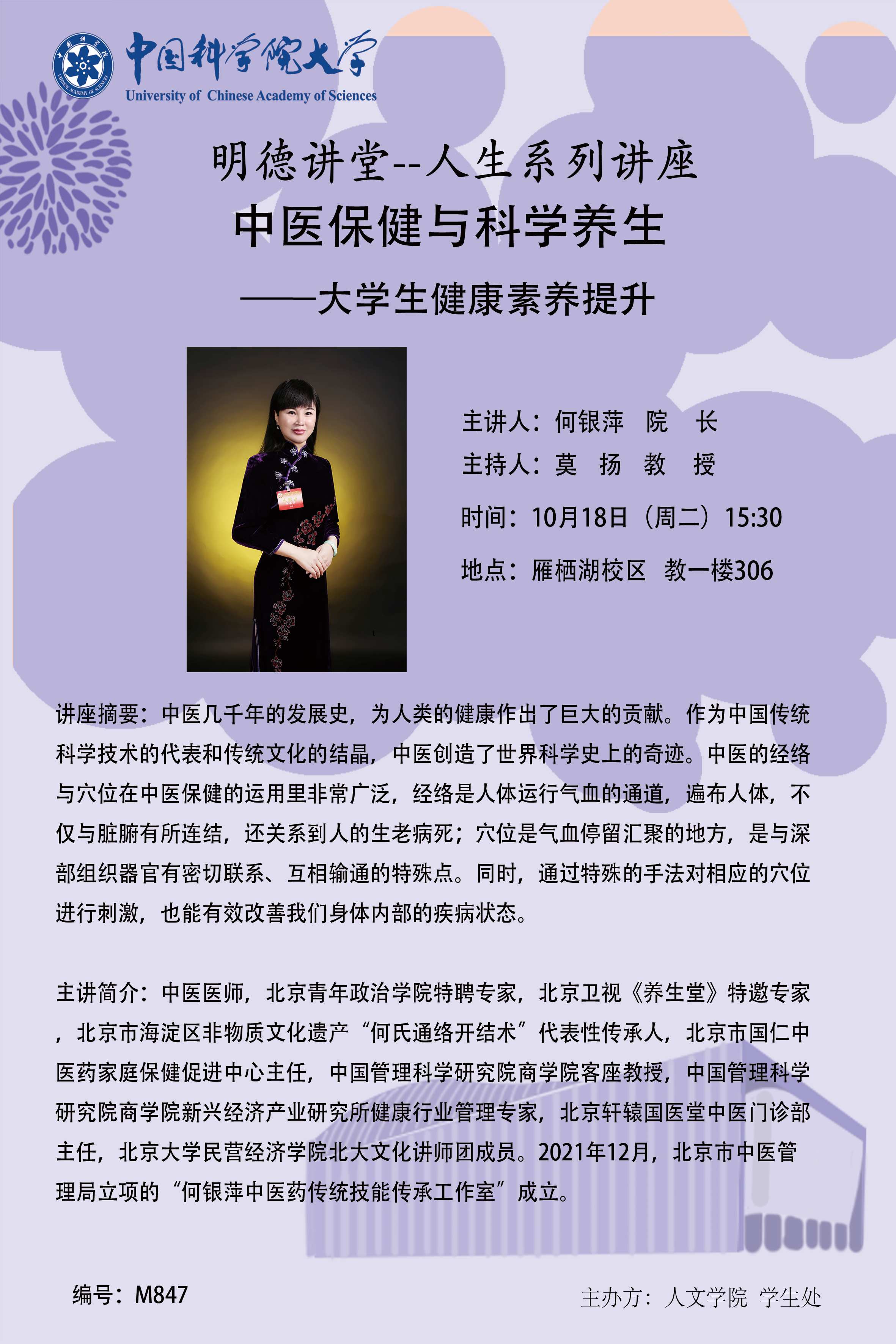 明德讲堂M847预告:中医保健与科学养生——老员工健康素养提升