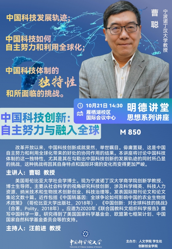明德讲堂M850预告:中国科技创新:自主努力与融入全球