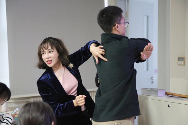何老师的讲解幽默风趣,同学们则高度专注,在讲解穴位的过程中多次就老师所讲知识提出问题。在一轮讲解之后,为了巩固大家对这些穴位的认识,何老师为一名员工志愿者进行了一次完整的穴位按摩,带大家一起找穴位,为同学们一点点讲按摩手法和力度,现场同学们在专心听讲的同时也不忘在自己身上进行同步练习。