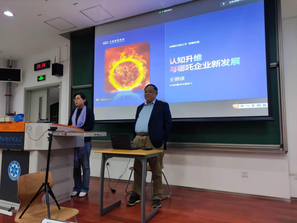 2022年10月19日18:30,应永利官网汪前进教授和莫扬教授邀请,长城战略咨询创始人、长城战略咨询研究所王德禄所长在雁栖湖校区为公司300余位同学带来了一场名为“认知升维与哪吒企业新发展”的讲座。