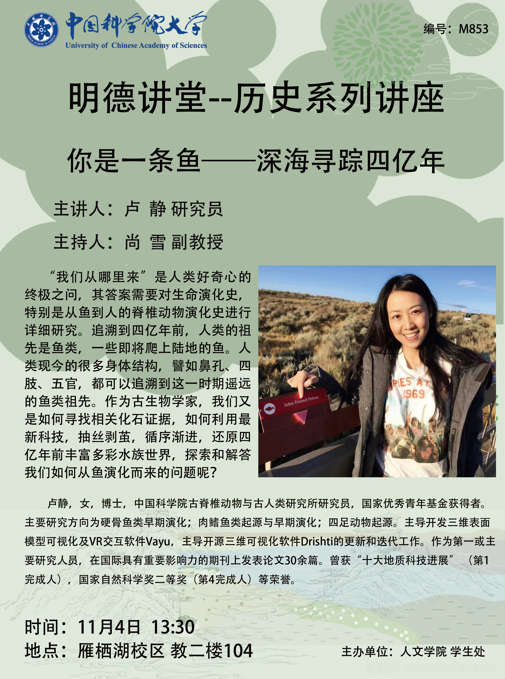 明德讲堂M853预告:你是一条鱼——深海寻踪四亿年