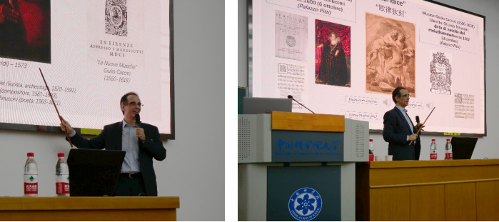 孟斐璇先生从中世纪后期复调声乐到巴洛克时期“激起情感”的新型表演艺术方向介绍歌剧,他介绍道,歌剧这种艺术形式诞生于文艺复兴后期和巴洛克早期过渡时期的意大利,歌剧的诞生是文艺复兴在思想、艺术、音乐理论方面所推动的进步发展的必然产物。地中海文化是西方文化的起源地,合唱和乐器伴奏更像歌剧的萌芽。